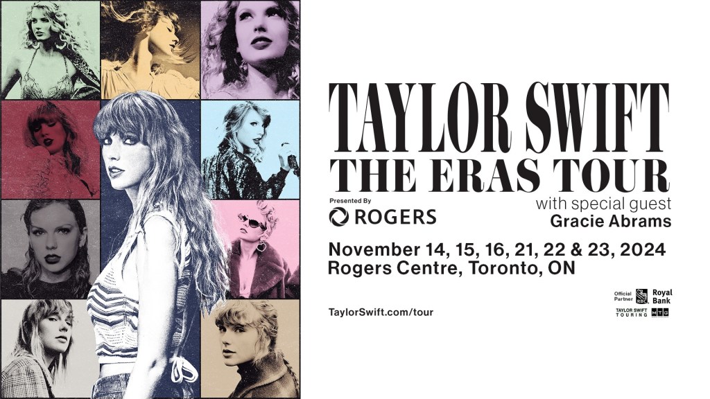 Taylor Swift announced added 2024 Canadian dates to Taylor Swift | The Eras Tour. The Canadian dates of Taylor Swift | The Eras Tour, will take place at Rogers Centre in Toronto November 14-16 and November 21-23, 2024, making her the first artist to perform six nights at this stadium.