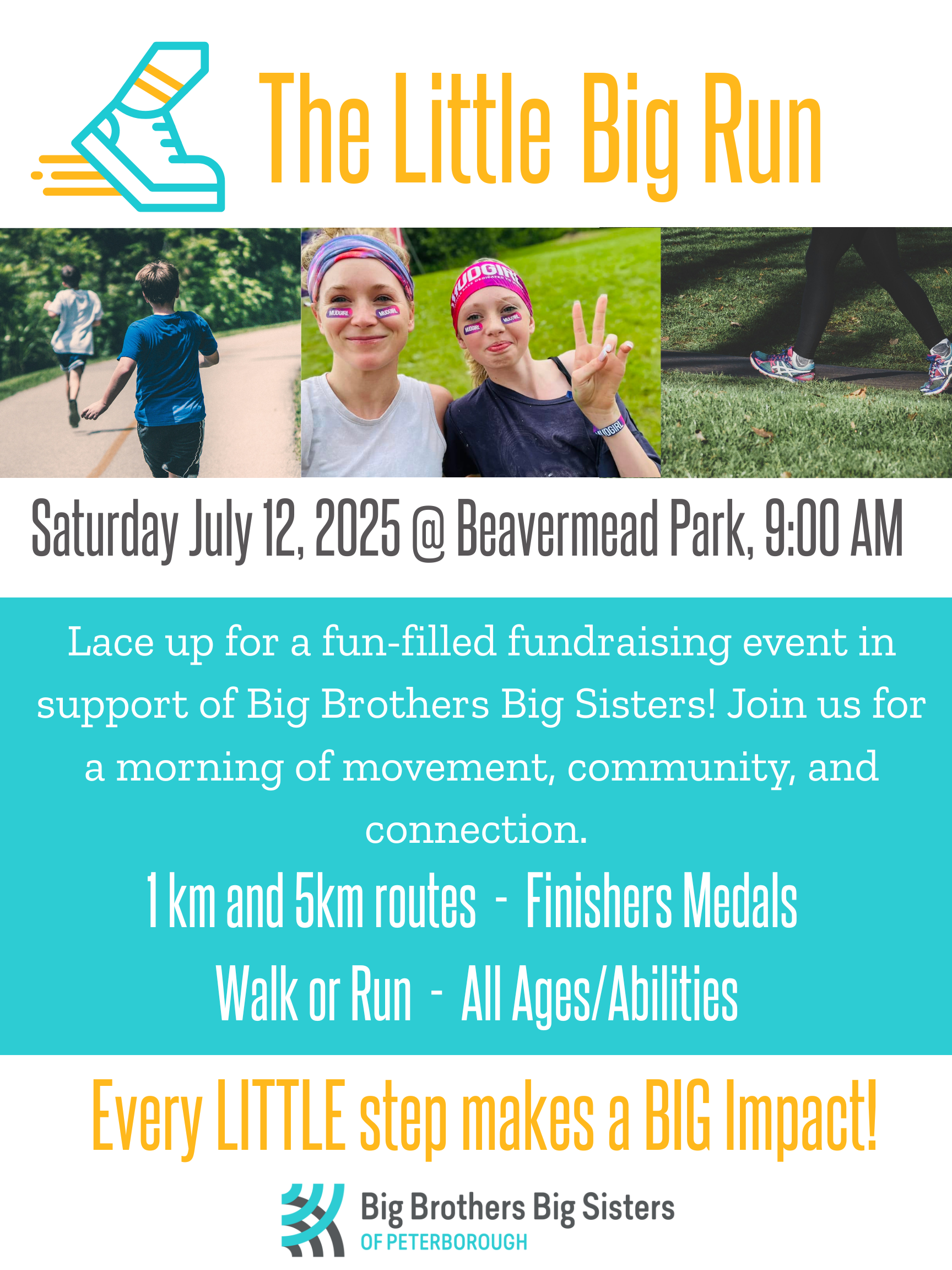 Join us on July 12th at beautiful Beavermead park for BBBS of Peterborough’s first fundraising run event!