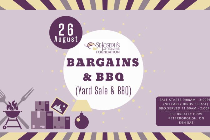 St Josephs at Fleming, 659 Brealey Drive, Peterborough, Ontario The St. Joseph’s at Fleming Foundation’s FIRST EVER fundraiser “BARGAINS &BBQ” yard sale and lunch is coming up on Saturday, August 26th. This will take place out on the terrace at St. Joseph’s at Fleming (659 Brealey Drive). You won’t want to miss out on this HUGE yard sale with AMAZING DEALS! The yard sale […]