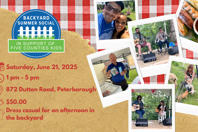 Five Counties Children's Centre, 872 Dutton Rd, Peterborough, ON, Canada It’s baaaa-ck! The second annual Backyard Summer Social in support of Five Counties Children’s Centre returns on June 24. Celebrate the start of summer by leaving your gala attire at home, while enjoying an afternoon of fun-filled activities that lets you be a kid again — while taking in the knowledge your ticket purchase is helping support Five Counties kids.