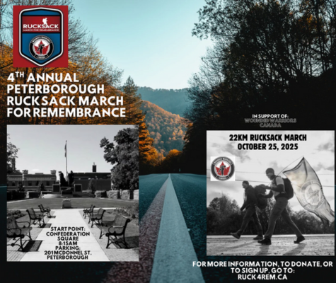 Confederation Square, 499 George Street N, Peterborough, ON Join the 4th Annual Peterborough Rucksack March for Remembrance on October 25, 2025!